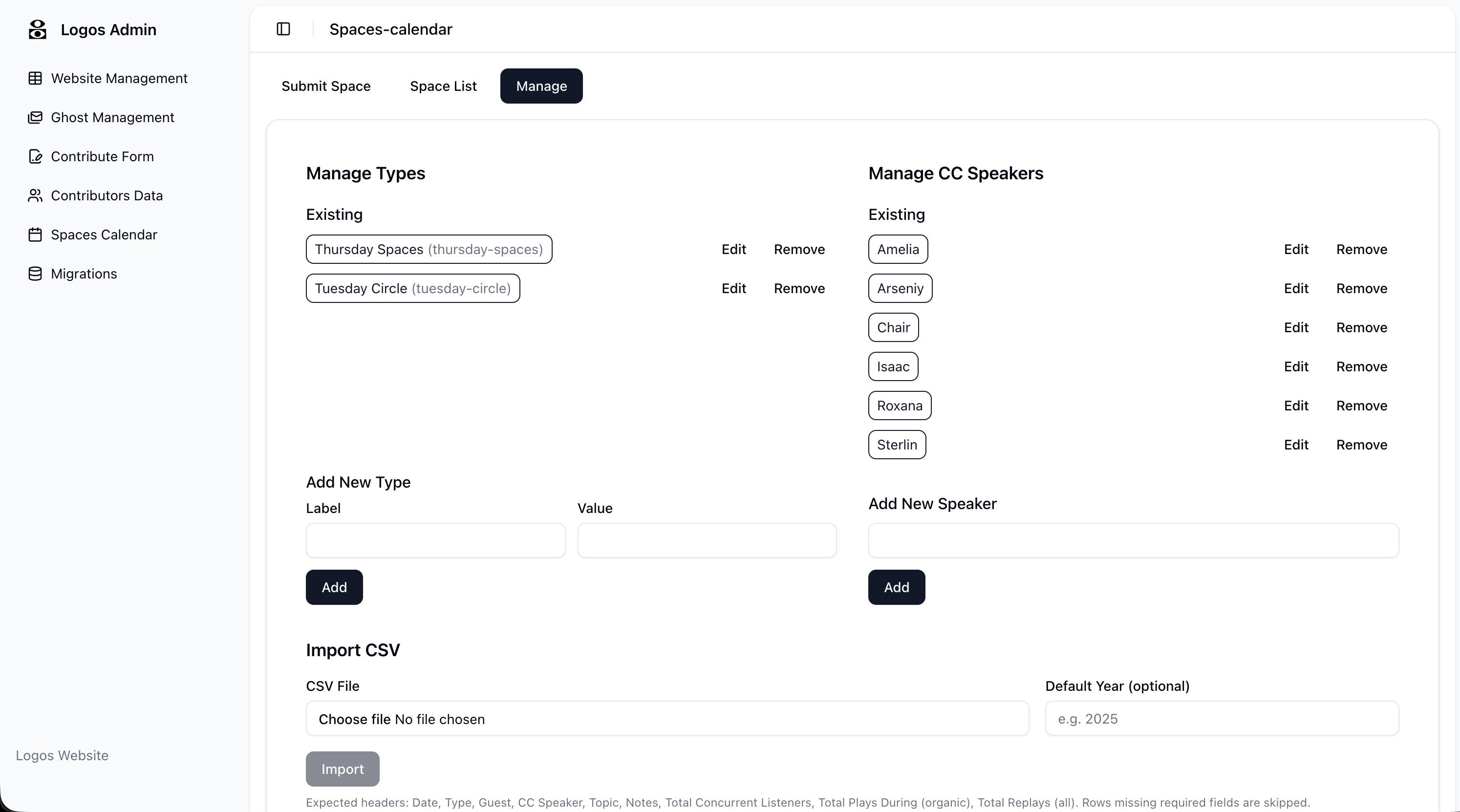 A prototype to display a content calendar in the Logos.co Website for people to follow and view past content.